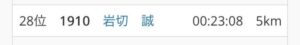当日はあいにくの小雨でタイム更新に不安感はありましたが、結果昨年を3分43秒上回る23分08秒でした。